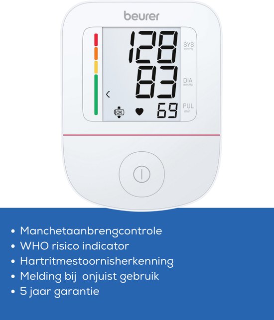 Möchten Sie einfach und präzise Blutdruck und Herzfrequenz messen ? Die Beurer BM 23 ist ein vollautomatisches und klinisch getestetes Blutdruckmessgerät , ideal für den Heimgebrauch. Dieses medizinisch zertifiziert Gerät misst nicht nur Ihren Blutdruck, sondern warnt auch vor unregelmäßigem Herzschlag (Arrhythmie-Erkennung) .