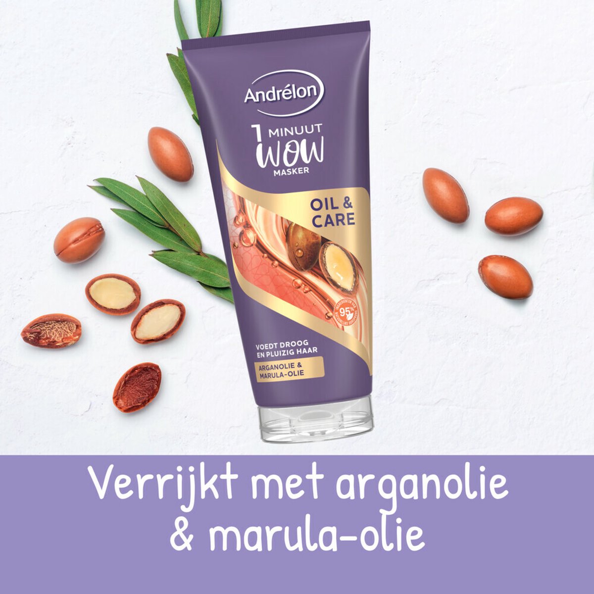Andrélon Special 1 minute WOW mask Oil & Care Andrélon Special Oil & Care 1 minute WOW mask for dry and frizzy hair, enriched with argan oil and marula oil.