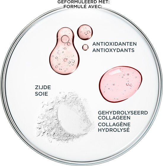 - With silk, hydrolyzed collagen, antioxidants and peptides.