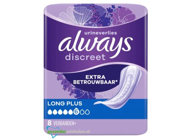 Ideaal voor veel urineverlies. Always Discreet verbanden voor urineverlies Long Plus bieden extra zekerheid. Ze zijn ontworpen om je extra bescherming en absorptie te bieden, zodat je je geen zorgen hoeft te maken over lekken. Hun structuur zorgt voor optimale bescherming dankzij hun ultradunne kern, zodat je niet hoeft te kiezen tussen comfort en bescherming. Always Discreet verband Long Plus biedt optimale bescherming wanneer niezen of lachen urineverlies veroorzaakt.