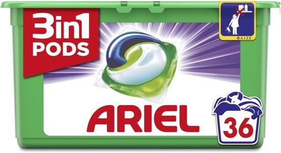 Uitzonderlijke reinigingskracht in een kleine capsule. Het unieke ontwerp van de Ariel 3in1 Pods Fresh Sensation Purple wasmiddelcapsules met verschillende compartimenten houdt de ingrediënten stabiel en gescheiden totdat ze de was bereiken, waar ze een supergeconcentreerde reinigingskracht geven. De innovatieve laag van Ariel wasmiddelcapsules lost bij contact met water volledig op en geeft de krachtige reinigingsformule vrij die veel verschillende soorten vlekken bestrijdt, met precies de juiste hoeveelheid wasmiddel. Gebruik het middel voor extra zachtheid en frisheid samen met Lenor wasverzachters en Unstoppables, een geurbooster voor je was. Ariel 3in1 Pods zorgen dat je kleren heerlijk schoon worden en de hele dag door fris en schoon ruiken. Let op. Dit product kan schadelijk zijn en ernstige verwondingen veroorzaken. Ariel pods buiten het bereik van kinderen houden. Bezoek www.keepcapsfromkids.eu voor meer informatie. .