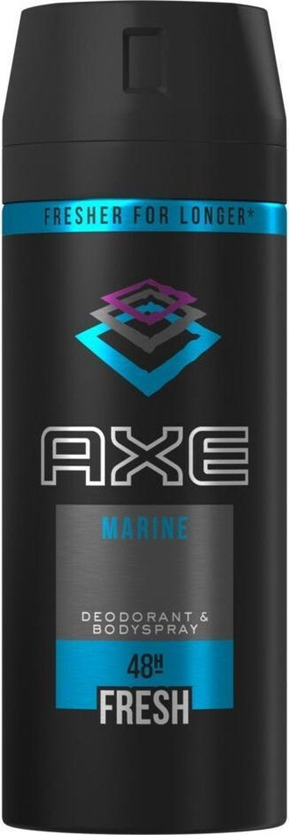 AXE Marine Bodyspray Deodorant AXE Marine houdt je fresh gedurende de hele dag. Deze deodorant spray heeft een mannelijke, frisse geur. Het combineert een orientaalse spicy geur met de frisheid van de zee. AXE Marine ruikt naar een perfecte zomerdag aan zee.