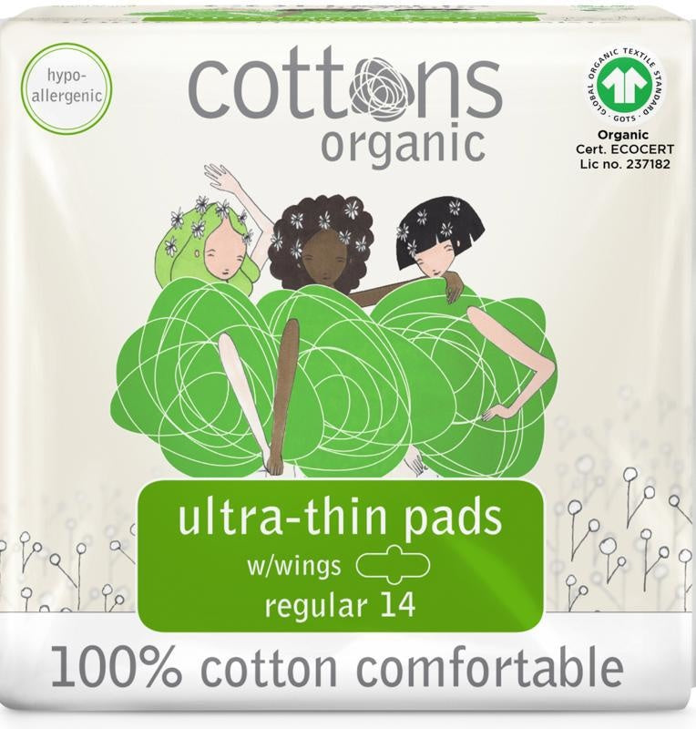 Cottons maandverband ultradun regular heeft een zachte toplaag van 100% natuurlijk katoen. Hypoallergeen, comfortabel en discreet. Met kleine vleugels. Geschikt voor middelzware dagen.