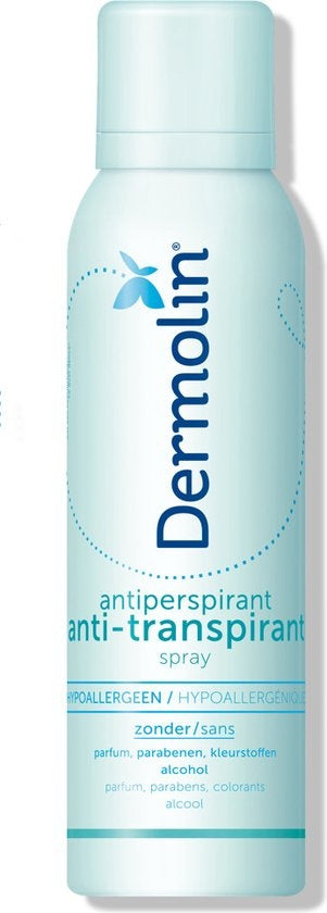 Dermolin Deodorant Anti Transpirant Spray deze deodorant spray bevat huidvriendelijke effectieve bestanddelen, waardoor je 24-uur een zeker gevoel hebt, zacht en vrij van irritatie.