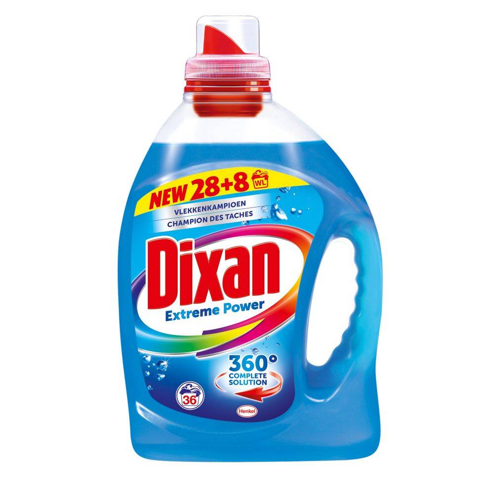 Extreme Power Gel van Dixan zorgt voor een vlekkeloze was. De gel wast al vanaf 20°C stralend schoon!