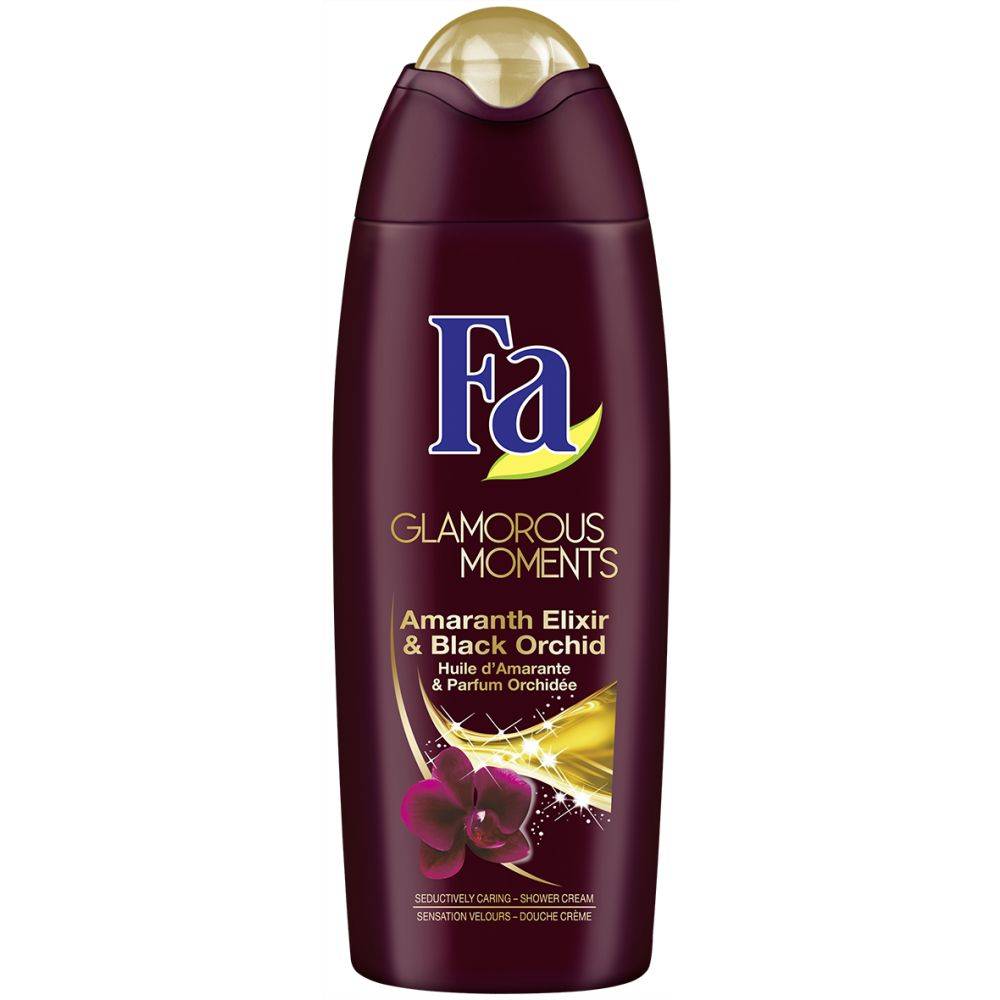 Fa Glamourous Moments is de eerste Douche creme met een gouden glans effect, Amarant Elixer en vloeibare parfum. Door de intense formule, wordt de huid verzorgd en verfrist als nooit tevoren. Het schuim geeft je een ultiem gevoel en verfrist lichaam en geest.