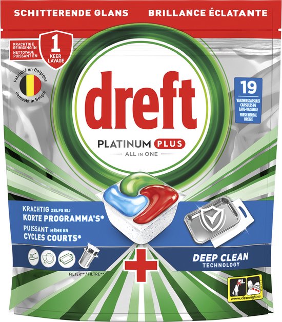 - Dreft Platinum Plus All In One Vaatwastabletten Deep Clean-technologie verwijdert 99% van de zichtbare en onzichtbare voedselresten dankzij de Deep Clean-technologie
