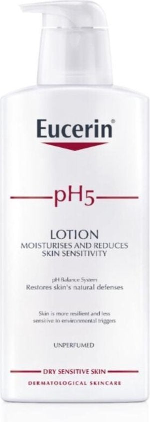 Eucerin pH5 Body Lotion parfumvrij 400ml hydrateert langdurig gedurende 24 uur voor een fluweelzachte huid, waarbij de natuurlijke weerstand wordt geactiveerd.