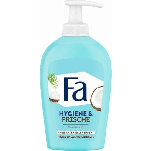 Fa Hygiene & Fresh Vloeibare Handzeep met verfrissende kokosgeur voor een zachte en verzorgende reiniging bij het handen wassen. De zachte formule heeft een antibacteriële werking en is pH-neutraal.