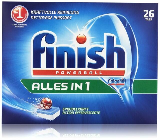De Finish Powerball All-in-1 Vaatwastabletten zorgen voor een schone en glanzende vaat.