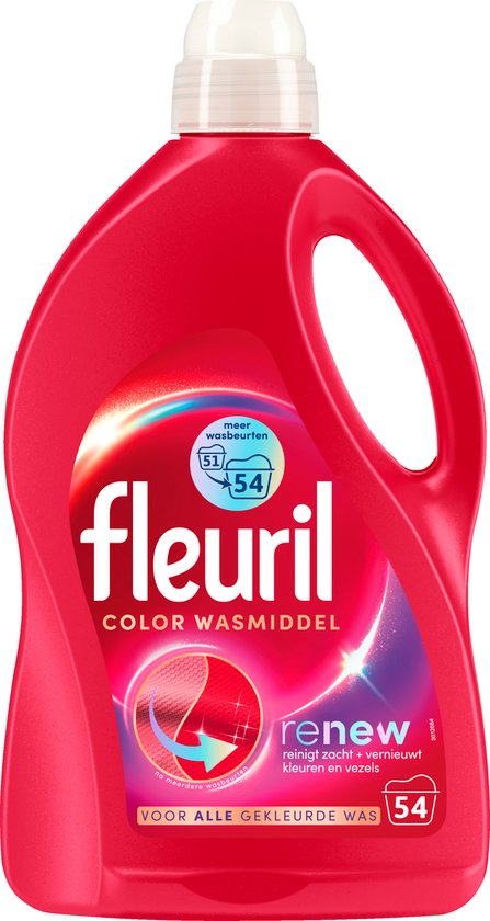 Ontdek Fleuril Color Vloeibaar Wasmiddel met de innovatieve Triple Renew Formule – de ideale verzorging voor kleurrijke kleding! Dit wasmiddel reinigt zacht en biedt de beste verzorging voor je kleuren en vezels. Het verwijdert pluizen voor een glad oppervlak en herstelt de levendige kleuren van je kleding. Zo voelt en ziet je kleding er als nieuw uit! Dit alles wordt gecombineerd met een betoverende geur, die zorgt voor langdurige frisheid.