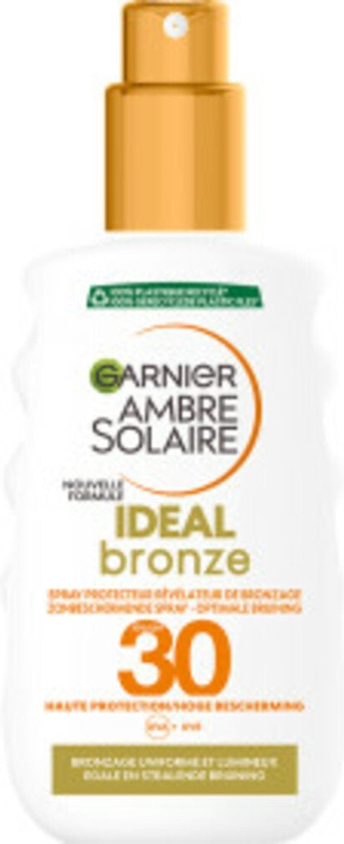 Ga voor een gebruinde teint die extra lang aanhoudt! De Garnier Ambre Solaire Ideal Bronze Zonnebrandspray SPF 30 bevat een gepatenteerd UVA/UVB filtersysteem. Een beschermende zonnebrand om de bruining te bevorderen.
