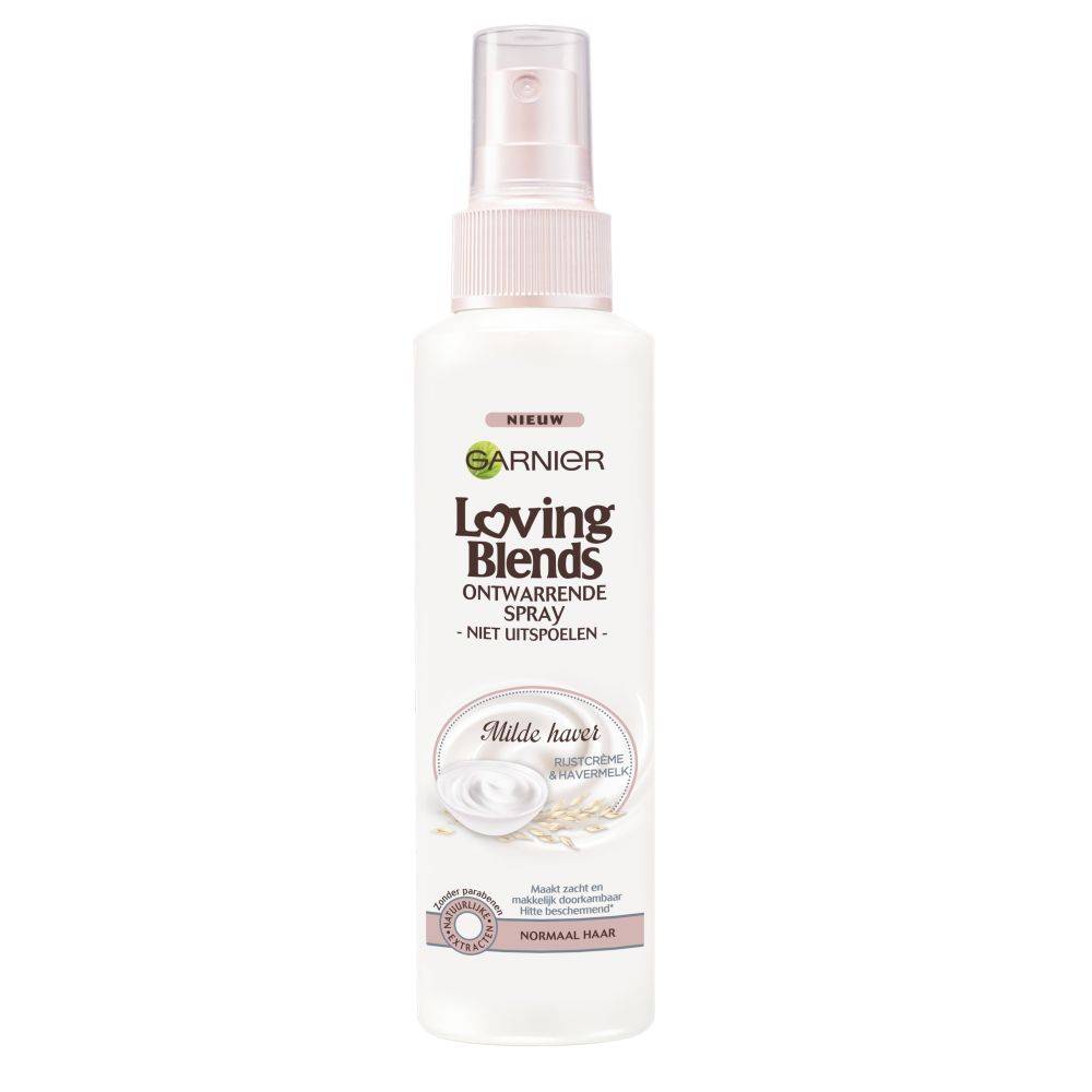 Garnier Loving Blends heeft haar eerste ontwarrende spray ontwikkeld, een spray verrijkt met rijstcrème en havermelk, speciaal voor het verzorgen van normaal haar.