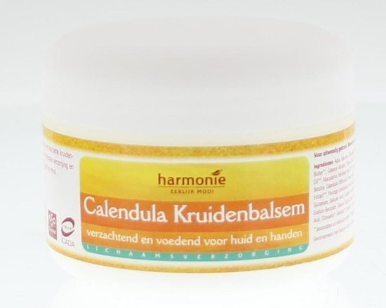 Calendula (goudsbloem) is reeds van oudsher één van de meest heilzame planten voor de huid. Te gebruiken bij een ruwe, schrale en gesprongen (door kou en droge lucht) huid. Deze kruidenbalsem ondersteunt het herstellend vermogen van de huid. De huid herstelt snel en wordt verzorgd. Zowel de olie als het extract wordt als hoofdbestanddeel toegepast in deze krachtige kruidenbalsem. De balsem is verrijkt met kostbare aromaoliën (zoals myrrhe), kruidenextracten en een melange van koudgeperste plantaardige oliën, wassen en vetten. Bij regelmatig gebruik blijft de huid zacht, gaaf en mooi en is deze kruidenbalsem door z'n veelzijdige werking een welkome hulp in elk gezin, voor jong en oud.Ingredienten:Calendula olie (bio), Sheabutter (bio), Jojoba olie (bio), Cocos olie (bio), Amandel olie, Calendula extract (bio), Tarwekiem olie, Aloë Vera, Bijenwas, Elemi olie, Vitamine E en Sinaasappel olie.INCI:Aqua, Glycerin, Calendula Officinalis (bio), Butyrospermum parkii (bio), Cetearyl Alcohol, Sodium Cetearyl Sulfate, Simmondsia Chinensis (bio), Cocos Nucifera (bio), Prunus Dulcis, Glyceryl Stearate, Triticum Vulgare, Fragrance Natural (parfum), Aloe Barbadensis, Cetyl Palmitate, Sodium Cocoyl Glutamate, Salicylic acid, Cera Alba, Ascorbyl Palmitate, Canarium Luzonicum, (d-alpha) Tocopherol, Citrus Dulcis, Sodium Benzoate, Phytic Acid, Daucus Carota, Salvia Officinalis, Cedrus Atlantica, Origanum Majorana, Commiphora Myrrha, Citrus Nobilis, Lactic Acid, Citric Acid, Rosmarinus Officinalis, Vanilla Planifolia, Citronellol*, Eugenol*, Geraniol*, Linalool*, Limonene* *bestanddeel uit Aroma-oliën Geconserveerd met Salicylic Acid en Sodium Benzoate bio = uit biologische teelt (organic)Gebruik:Naar behoefte dagelijks meermalen dun aanbrengen. Bij regelmatig gebruik blijft de huid zacht, gaaf en mooi.