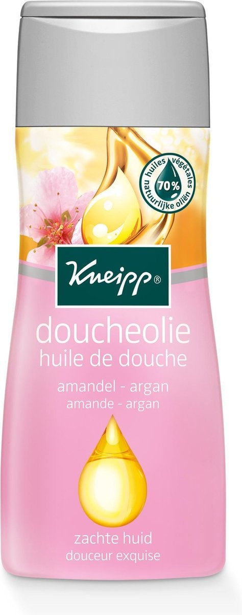 Geniet van de heerlijk geurende Kneipp¬Æ doucheolie Amandel - Argan. De mild schuimende zeepvrije doucheolie, met meer dan 70% natuurlijk verzorgende oliën, voedt, verzorgt, hydrateert en herstelt de huid.