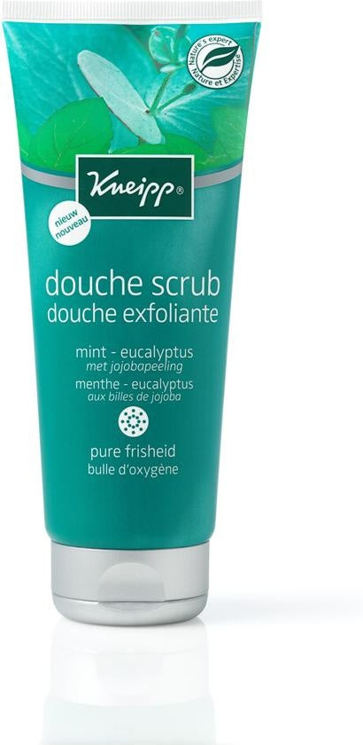 Kneipp Douchescrub Mint Eucalyptus bevat natuurlijke jojoba scrubdeeltjes (Geen plastic scrubdeeltjes aanwezig in dit product) en daardoor is deze douche scrub een ideaal 2-in-1 product voor mensen die douchen en scrubben willen combineren. Dit is een heerlijk verfrissende douche die de huid verzorgt door de amandel-, jojobaolie en sheabutter. De natuurlijke jojoba scrubdeeltjes verwijderen de dode huidcellen op milde wijze (deze zijn niet belastend voor het milieu). Het resultaat; een verzorgde, schone en gladde huid.